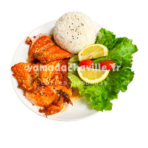 servi avec 1 soupe miso🥣, 1 salade choux🥗 et 1 riz nature🍚